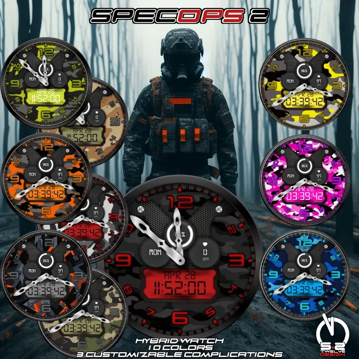 享受 10 種迷彩圖案、半透明指針和非常獨特的秒指針。