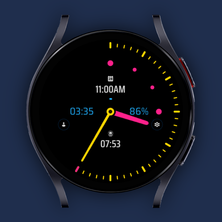 简约的模拟 Wear OS 手表,充满动感和一点奇思妙想