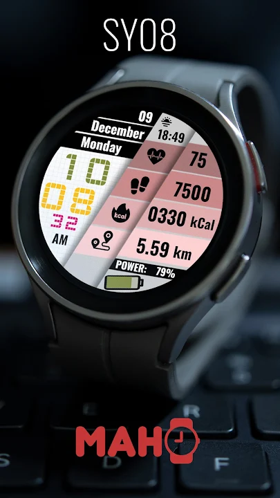 SY08 是一款專為 Wear OS 手錶設計的錶盤。
