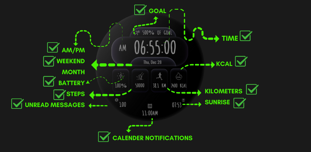 - 兼容三星手表 4 系列及以上(也兼容 2.1.4 的圆形 400x400 半径手表)