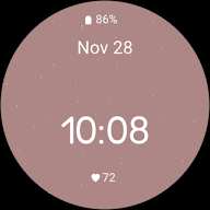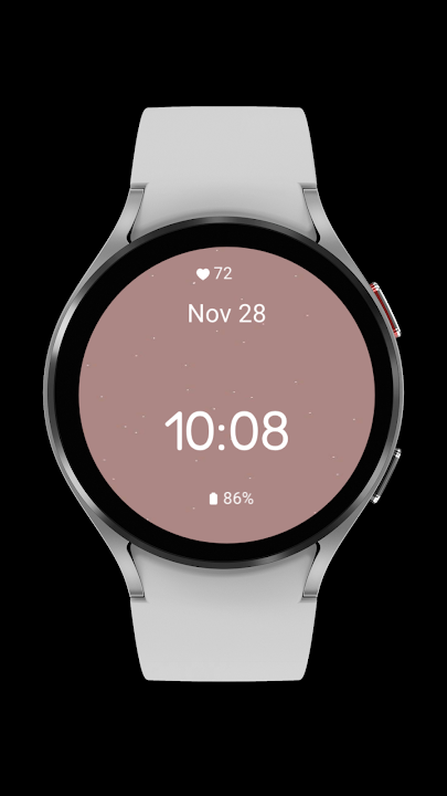 Minimal design with a soft background and clear time display. Shows battery, date, and heart rate. All complications are customizable, allowing you to replace them with others you have installed.