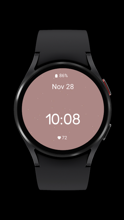 极简设计,柔和背景与清晰时间显示。显示电量、日期和心率。所有信息组件均可自定义,可替换为您安装的其他组件。