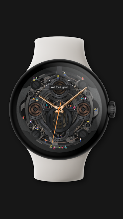 A playful, gear driven Wear OS watch face full of charm and motion.