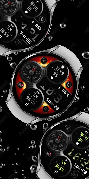 Animation of Fire on your Wrist, exclusive Dark digital watch-face with many features, sharp graphic.