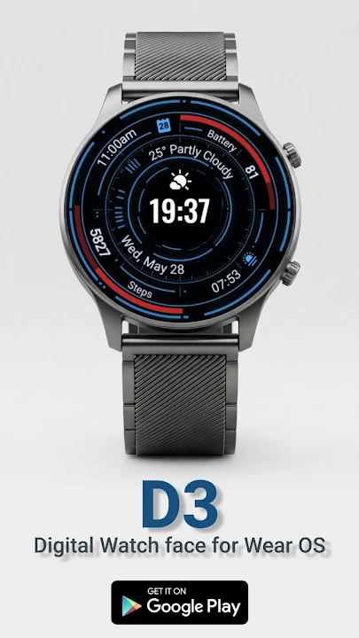 Stay in style and stay informed with Digital Watchface D3 – a futuristic and highly functional watch face for Wear OS.