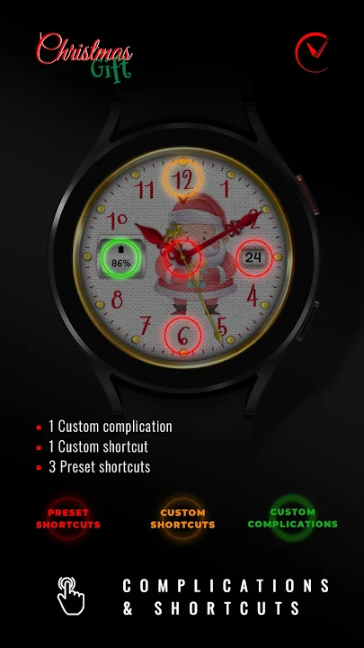 Christmas mood coming soon! The “Christmas Gift” free analog watch is a delightful and festive timepiece designed to capture the magic of the holiday season. With its charming and whimsical design, this watch face brings a cheerful spirit to your wrist. Christmas themed Analog watch face for Wear OS.