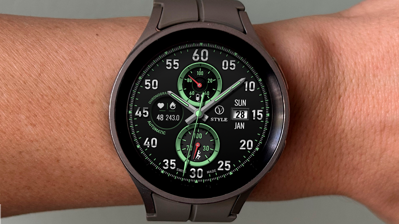 这款数字表盘适用于 Wear OS 智能手表,有很多选项