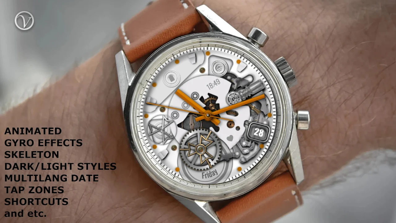 这款模拟动画骨架表盘适用于 Wear OS 智能手表,有很多选项: