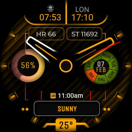 適用於智慧手錶的類比錶盤,包括天氣資訊和多色主題