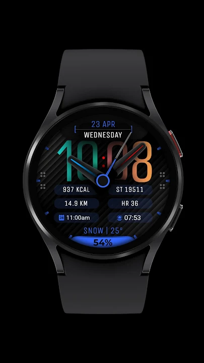 适用于 Wear OS 智能手表的混合表盘,包括天气信息和多色主题