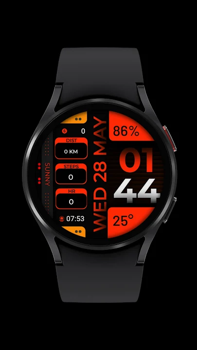 Digital Watch Face For Smartwatch Included Weather Info And Multi Color Theme