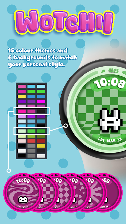 Wotchii 是您手腕上的虚拟宠物,当您达到当天的步数目标时,它们会通过进化来鼓励您移动。此版本包含 Pomppia - 您的新弹性伴侣!与磨损操作系统兼容。