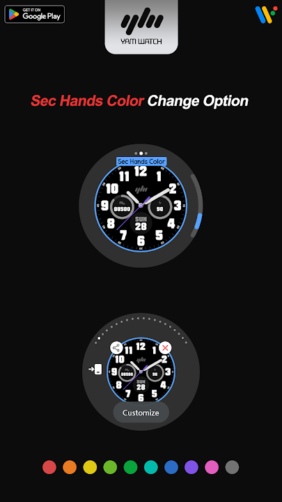 *The ‘YamWatch Install Guide’ apps are additional apps that support downloading apps on Wear OS devices. It may be different from the watchface screenshot of the ‘YamWatch Install Guide’ app and the watchface screenshot that actually downloaded. Most of SamWatch’s Watchface app products include apps for smartphones. Apps for ‘YamWatch Install Guide’ only help you download Wear OS apps.