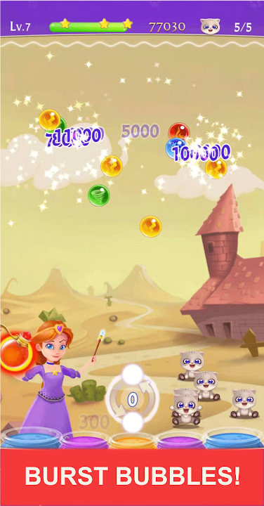 Color-match for 3 bubbles to pop them in this magical puzzle shooting adventure