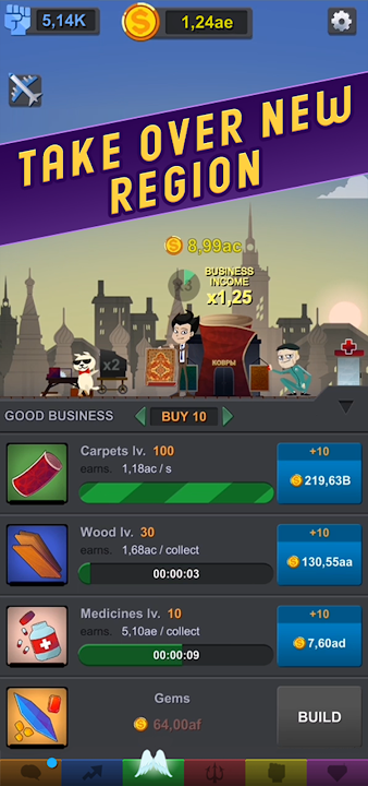 🏢 LEVEL UP your idle business to evolve them into idle cash factories
