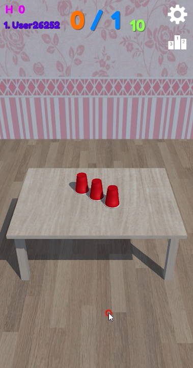 三个杯子中有一个藏着小球。杯子移动的速度越来越快。找出小球藏在哪里。