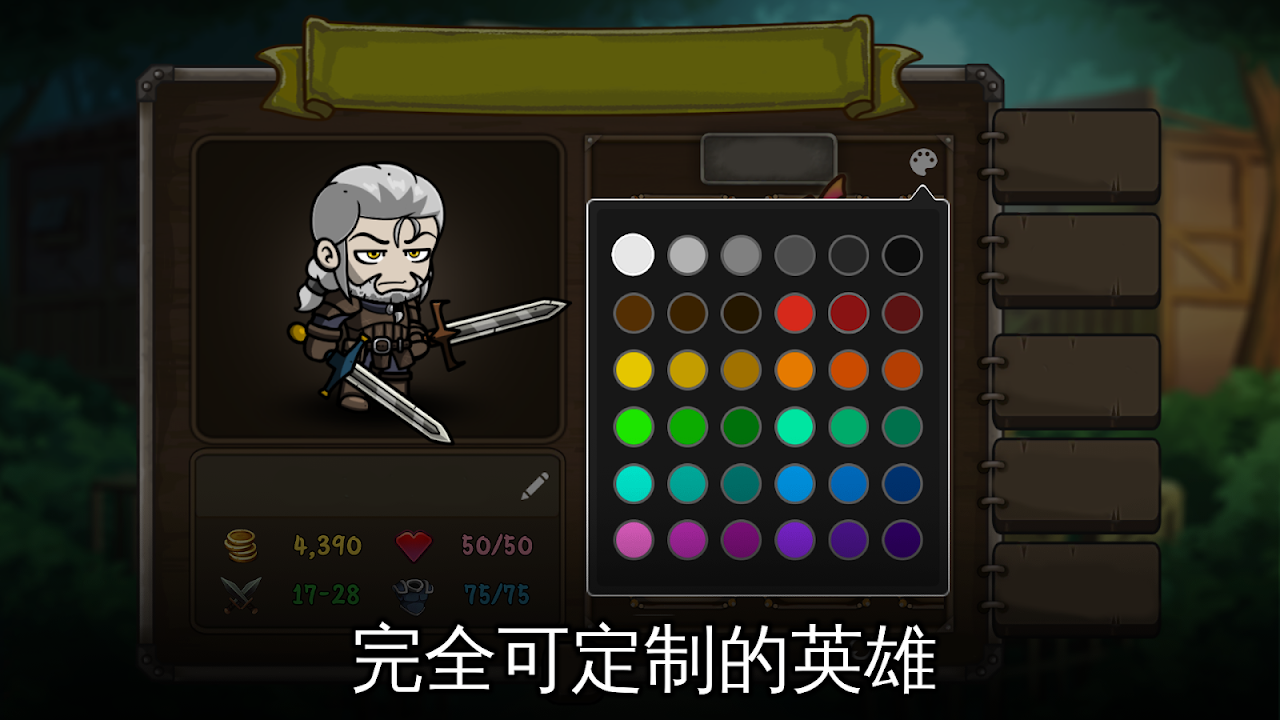 武器和盔甲有不同的层次 - 随着你的进展,你将获得更高层次的装备,可以进一步提升你的闲置战斗团队的力量。