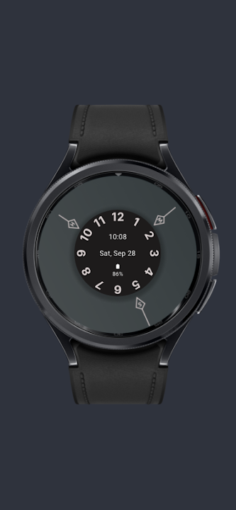 A stylish watch face with arrows for hour, minutes and seconds rotating around a watch dial.