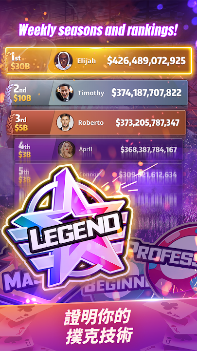 超級錦標賽-與1000位世界玩家實时競爭,成為撲克高手。