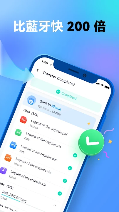 資料傳輸應用程式 - MobileTrans 的速度比藍牙快 200 倍,即使是大型檔案也能確保快速傳輸。平均速度為 30MB/s,只需 30 秒即可傳輸 1GB 影片。