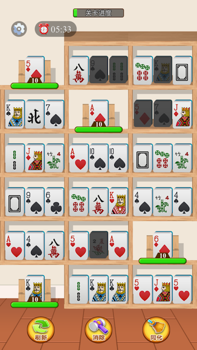 Place three identical items in one grid of the container to eliminate these three items, and finally clear out all the items on the shelf.
