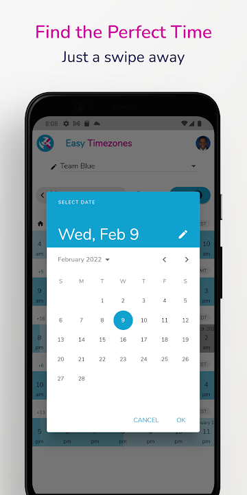 〉Swipe the interactive timeline to find perfect meeting times