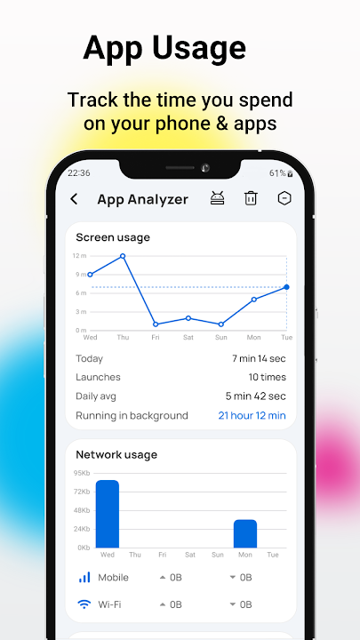 - 应用程序网络数据使用情况,查看已安装应用程序的 Wifi 或数据流量使用情况。