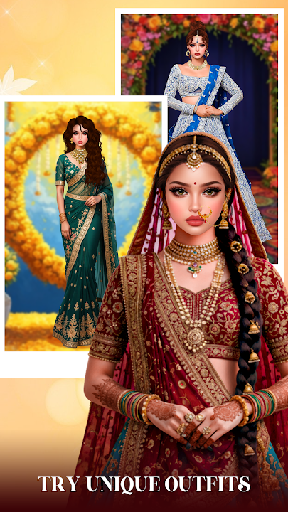 探索海量皇家纱丽、设计师款纱丽、闪耀珠宝、时尚发型、优雅凉鞋和精美曼海蒂图案,尽在《新娘》游戏中。🎉 混搭色彩、质地和风格,打造完美的新娘妆容,适用于 हल्दी(Haldi)、曼海蒂(Mehndi)、桑吉特(Sangeet)以及盛大的印度婚礼仪式。