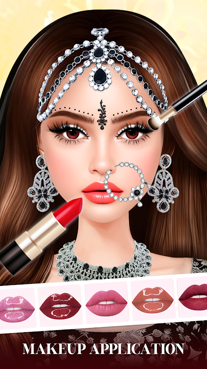 享受流畅的操作、鲜艳的画面和丰富的化妆选项,例如口红、腮红、眼影、高光等等。在印度婚礼装扮游戏中,为女孩们的新娘添加精美的配饰,例如手镯、额饰、鼻环和优雅的披肩,打造完美造型。💍