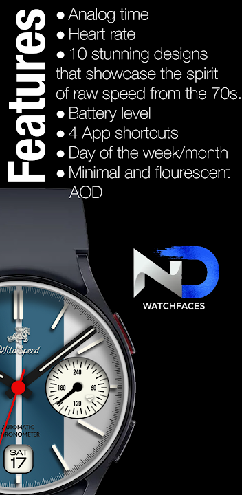 70s-inspired speed watch face for Wear OS. Rev up your style and wrist.