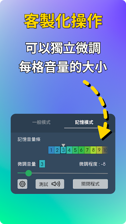 可以針對某一格的音量進行微調。例如,第四格的音量太大,則可以透過偏好模式,單獨把第四格的音量調小聲一點,之後音量四的聲音都會變小聲。