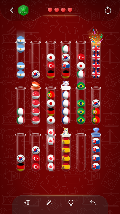 If you wish to relax after a long day at work or a long commute, playing with bouncy balls is the most relaxing thing you can do! It’s proven that it helps with your well-being, it reduces your stress level and it calms you down. It’s almost like a therapeutic, ASMR experience but accessible directly on your mobile and completely free of charge. Are you ready to experience a brand new relaxing gaming experience with a Ball Sort Puzzle game?💧🧪🌈