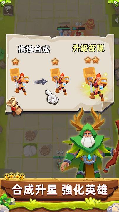 随机召唤独特英雄,合成升星强化战力,打造你的专属战队