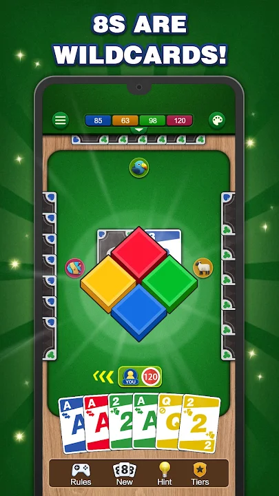下載《瘋狂八人組》並享受這款令人興奮的紙牌遊戲的每個階段!在瘋狂八人紙牌遊戲中測試你的紙牌技巧並成為最終的贏家!