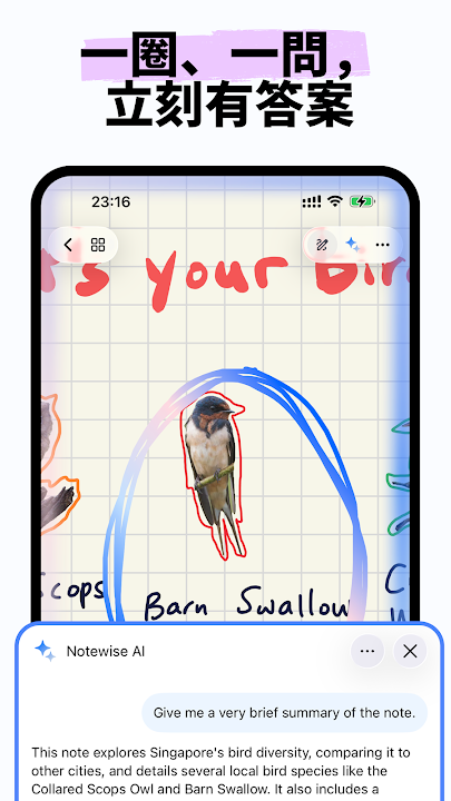 • 高亮任意內容(手寫或打字),並提出上下文問題