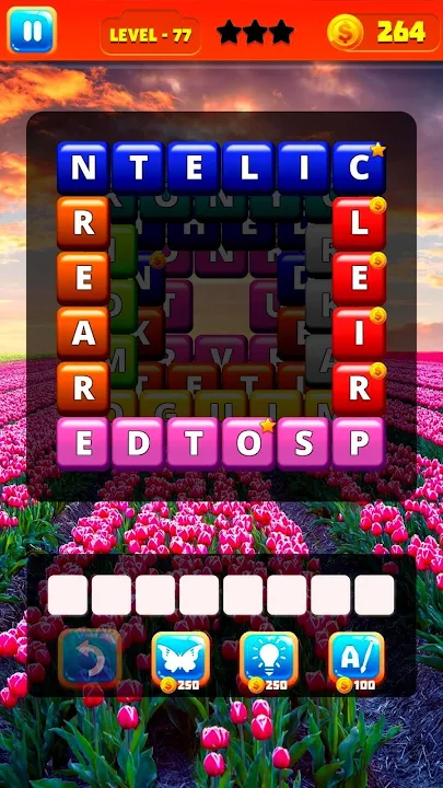 在每個級別中都有一個帶有單詞堆棧的板。您的任務是從這些單詞堆棧中收集和尋找單詞並清除板。