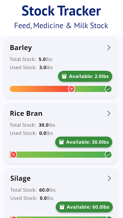 ✅ Record and manage stock for feed, milk, medicines & vaccines
