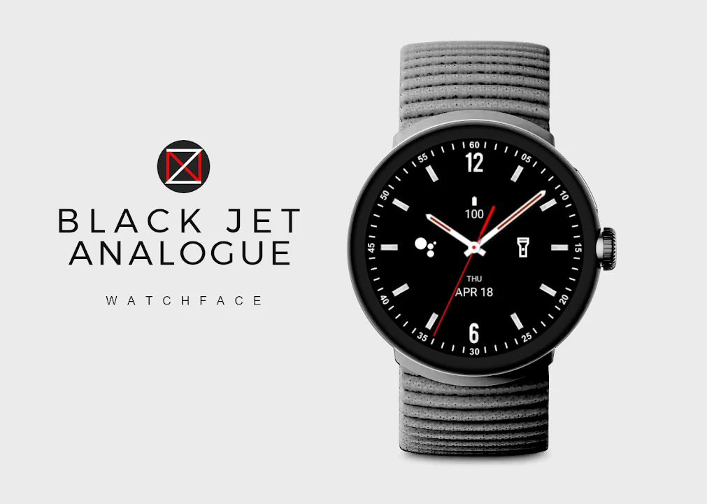適用於 Wear OS 的 Black Jet 模擬錶盤