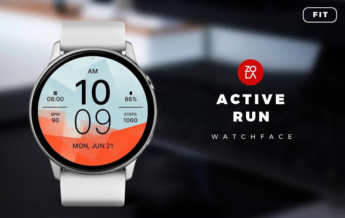 適用於 Wear OS 的 Active Run Fit 錶盤,精美的數位錶盤採用運動設計,專注於易讀性和可用性。