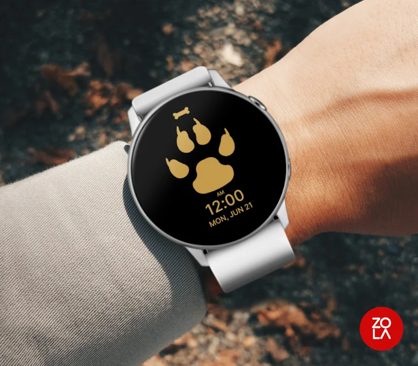 適用於 Wear OS 的 Dog Paw Watch Face,精美的數位錶盤採用時尚設計,注重易讀性和可用性。