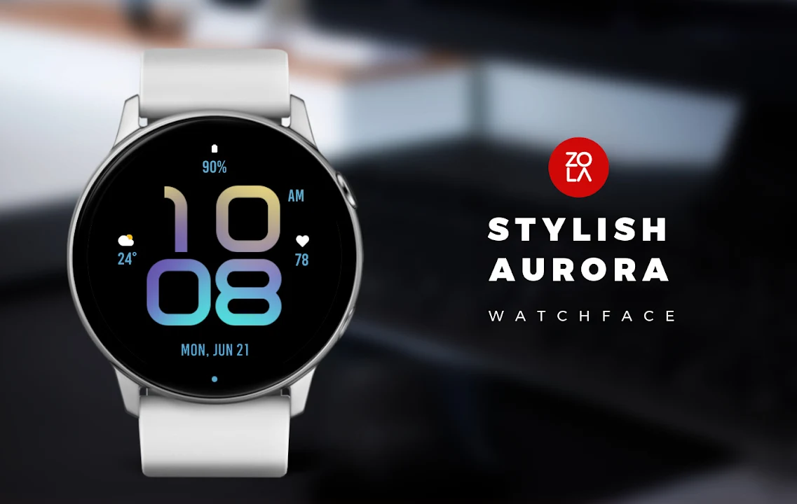 适用于 Wear OS 的时尚 Aurora 表盘,精美现代的数字表盘,时尚设计,注重易读性和实用性。