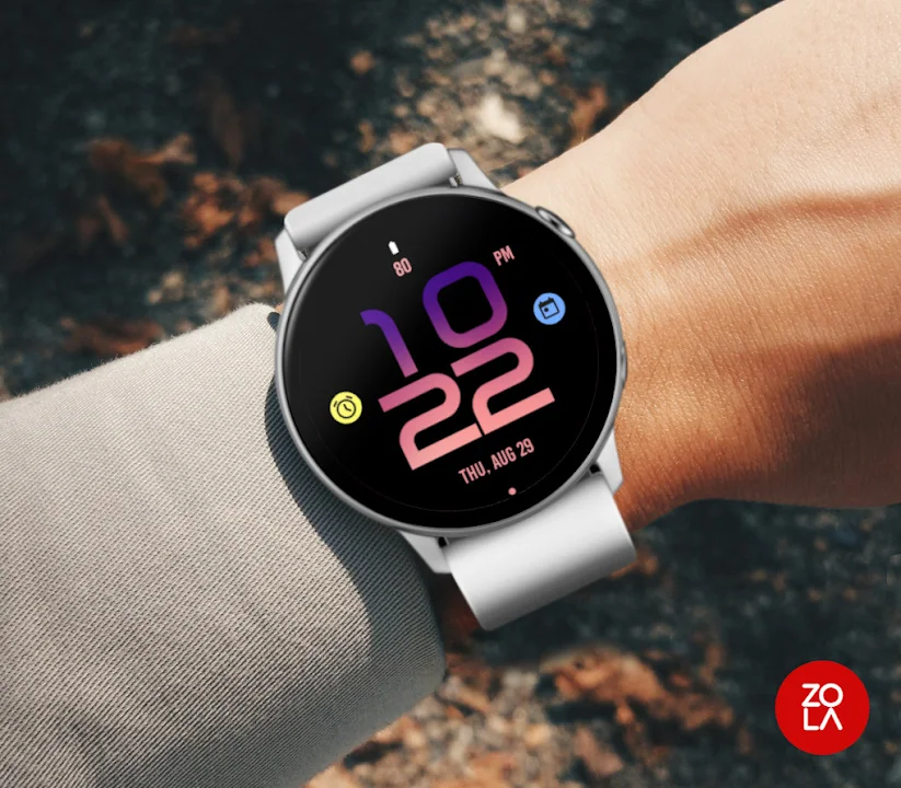 時尚紫色錶盤,適用於 Wear OS,精美錶盤採用時尚設計,專注於易讀性和實用性。