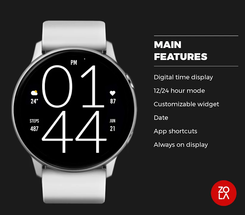 - 可自訂的小部件併發症:添加步數,心率,天氣等。
