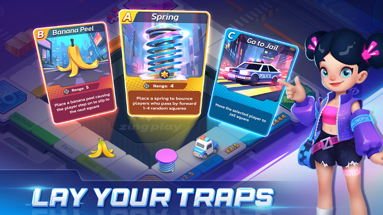每個等級的大富翁技能卡組都是不同的,即使剛開始遊戲也很容易使用。除了類似骰子遊戲的擲骰子玩法外,技能卡的種類也隨著關卡的增加而變得更加多樣化。隨著玩遊戲的時間的推移,你會發現許多新卡牌,扮演著不同的角色。在你的戰術計劃中互相對抗 360 mobi Monopoly。不要停止收集技能卡。擁有你的生意、環遊世界並擁有你的房地產。