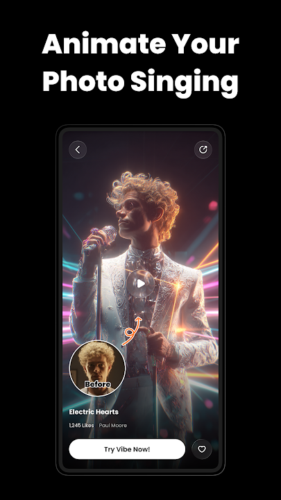 Turn any image into a lively, singing video with just one tap. No editing experience needed—VibeMe AI turns your photos into animated performances instantly.