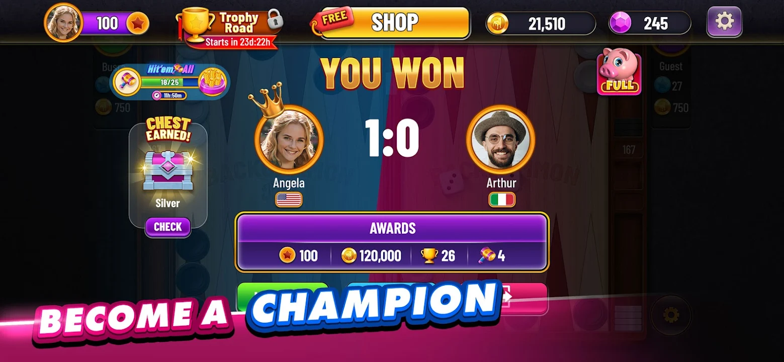 使用我们的西洋双陆棋直播应用,与世界各地的玩家联系。体验实时竞技的刺激,成为棋盘上的霸主!