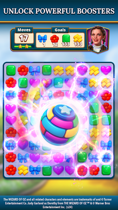 - Match 3 with new and unique gameplay based on the beloved Wizard of Oz movie and characters!