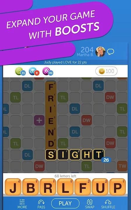 Come enjoy The Original Word Play! Grab your mobile device and prove you have what it takes to best your friends and family in this addictive multiplayer game. Whether you need to relax after a long day, or are looking to train your brain, this word game is perfect for you! Make sure to keep your mind sharp as you choose the perfect move on the board, as one word can be the difference between victory and defeat!