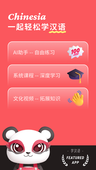 ●边玩边学,还免费!Chinesia精心设计的游戏化课程,让你在开心的闯关过程中轻松提升中文水平。