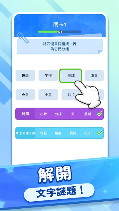 鎖定同類單詞,根據關係詞彙歸組,完成文字遊戲挑戰!